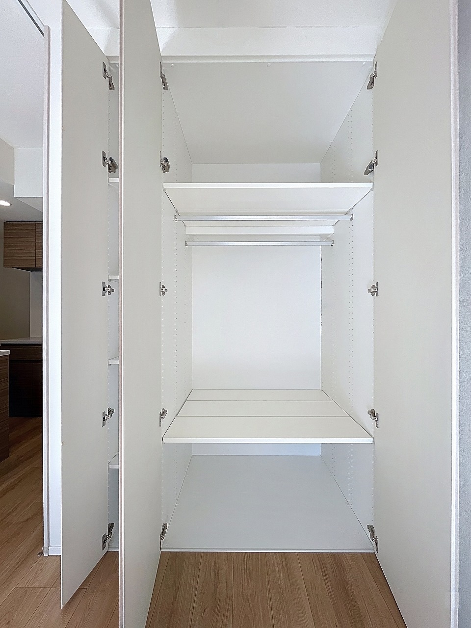 洋服や季節物の荷物はクローゼットにまとめ、玄関まわりはシューズボックスですっきりお片づけ♪